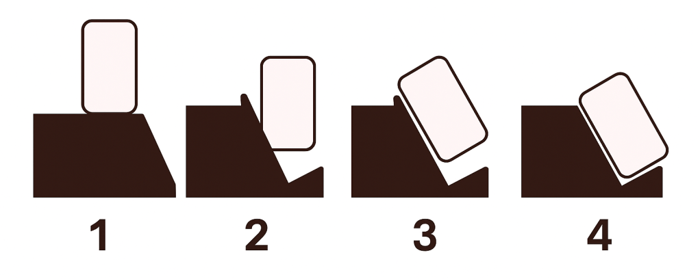 - Position 4 (tile fully on sloped rack): Everyone agrees, this is racked.