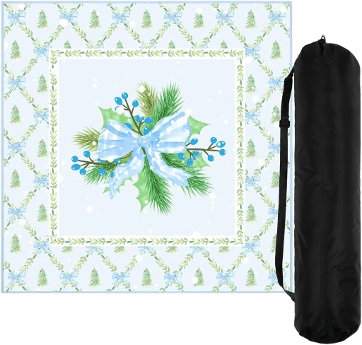 This Snowy Green Pine Needle Wreath Christmas Mahjong Mat is 31.5 x 31,5 and is 2 mm thick.
